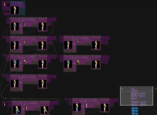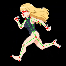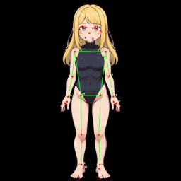 前回から年単位で間が空いた。 ニュース上のAIは追っていたが身辺が忙しく生成AIから離れていた。 その間に状況が様変わりしていたので現行最新の生成AIが集まるComfyUIを導入し暫く弄って居た。 なるほどこれは面白い。 ノードベースで繋ぐプログラム…さながらpython界のCFみたいなものだった 慣れるまでは大変だが慣れてくると色々と構築したくなるというもの。 例によってお題はゲーム用アニメーションデータだ 最近は動画生成AIもあるのでそれを使ってスプライトアニメーションも作ってみたりしたが ゲーム素材として見るとやはり今一つの出来になってしまう。 細部デザインの破綻は目をつぶったとしても中割コマの残像化など対処できない部分がどうしても出るのだ そもそも考えてみれば学習元の映像自体、動きのある物はブレて記録されているのだからブレているのが正解だ… 正解を再現してくれているんだからこれはもうどうしようもないのだ そこで今回考えたのはSpineだ 検出AIを組み合わせればその素材が上手く作れるのではないかという研究である (容量削減に破綻も無くなる一石二鳥) 問題はSpine素材を作り上げるまでの労力をどれだけ削減できるかである 今回主に使うのはPose Landmarkerとセグメンテーション検出 https://ai.google.dev/edge/mediapipe/solutions/vision/pose_landmarker https://ai.google.dev/edge/mediapipe/solutions/vision/image_segmenter Pose Landmarkerによって関節が検出できるというAIソリューションでこれの検出を画像に適用するとこんな感じに検出される この時点で既にボーン情報が得られたと見ることが出来る